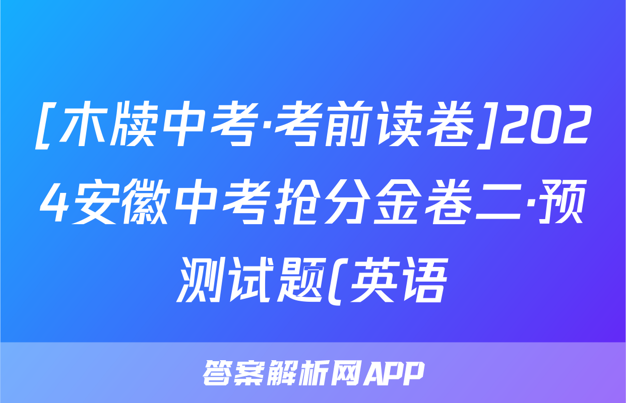 [木牍中考·考前读卷]2024安徽中考抢分金卷二·预测试题(英语)正在持续更新,目前2024-2025英语周报答案网为大家整理了相关试题及答案,供大家查缺补漏,高效提升成绩。