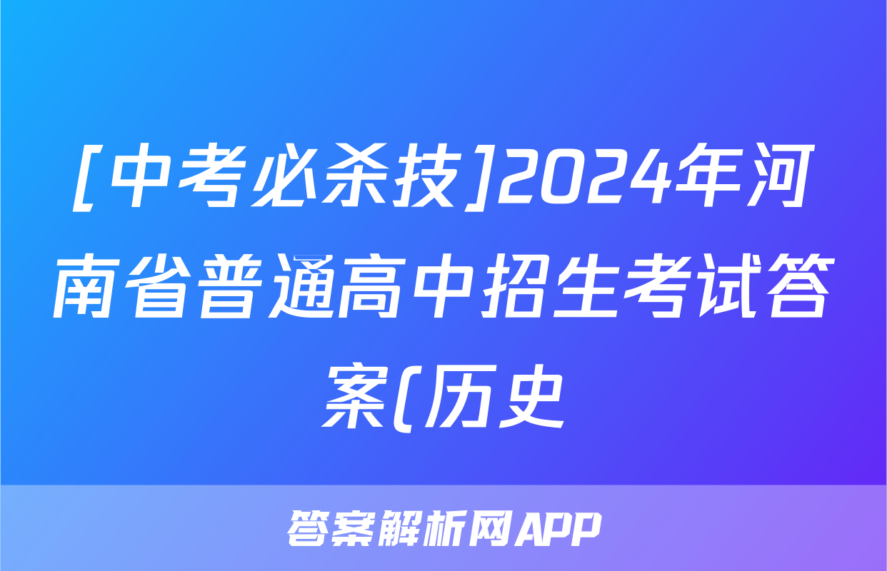 [中考必杀技]2024年河南省普通高中招生考试答案(历史)正在持续更新,目前2024-2025英语周报答案网为大家整理了相关试题及答案,供大家查缺补漏,高效提升成绩。