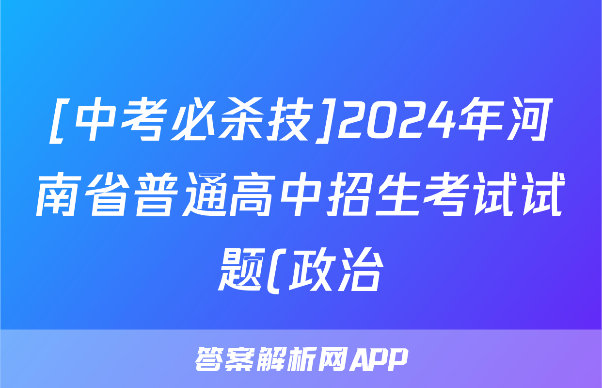 [中考必杀技]2024年河南省普通高中招生考试试题(政治)正在持续更新,目前2024-2025英语周报答案网为大家整理了相关试题及答案,供大家查缺补漏,高效提升成绩。