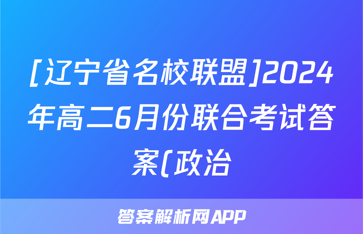 [辽宁省名校联盟]2024年高二6月份联合考试答案(政治)正在持续更新,目前2024-2025英语周报答案网为大家整理了相关试题及答案,供大家查缺补漏,高效提升成绩。