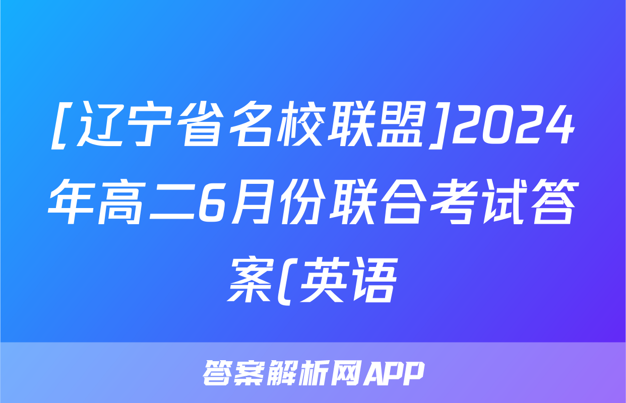 [辽宁省名校联盟]2024年高二6月份联合考试答案(英语)正在持续更新,目前2024-2025英语周报答案网为大家整理了相关试题及答案,供大家查缺补漏,高效提升成绩。