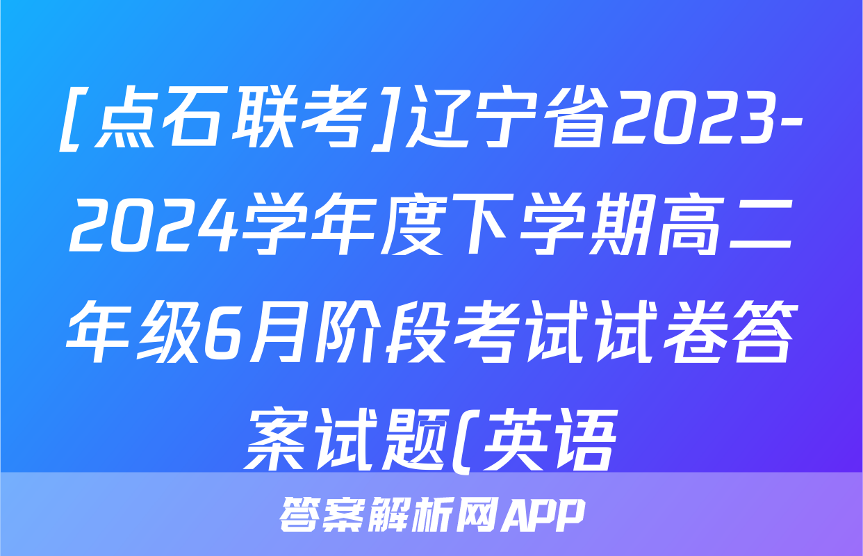 [点石联考]辽宁省2023-2024学年度下学期高二年级6月阶段考试试卷答案试题(英语)正在持续更新,目前2024-2025英语周报答案网为大家整理了相关试题及答案,供大家查缺补漏,高效提升成绩。