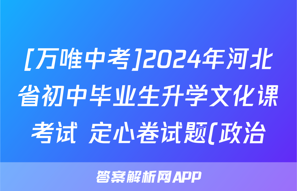 [万唯中考]2024年河北省初中毕业生升学文化课考试 定心卷试题(政治)正在持续更新,目前2024-2025英语周报答案网为大家整理了相关试题及答案,供大家查缺补漏,高效提升成绩。