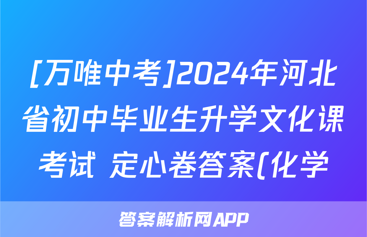 [万唯中考]2024年河北省初中毕业生升学文化课考试 定心卷答案(化学)正在持续更新,目前2024-2025英语周报答案网为大家整理了相关试题及答案,供大家查缺补漏,高效提升成绩。