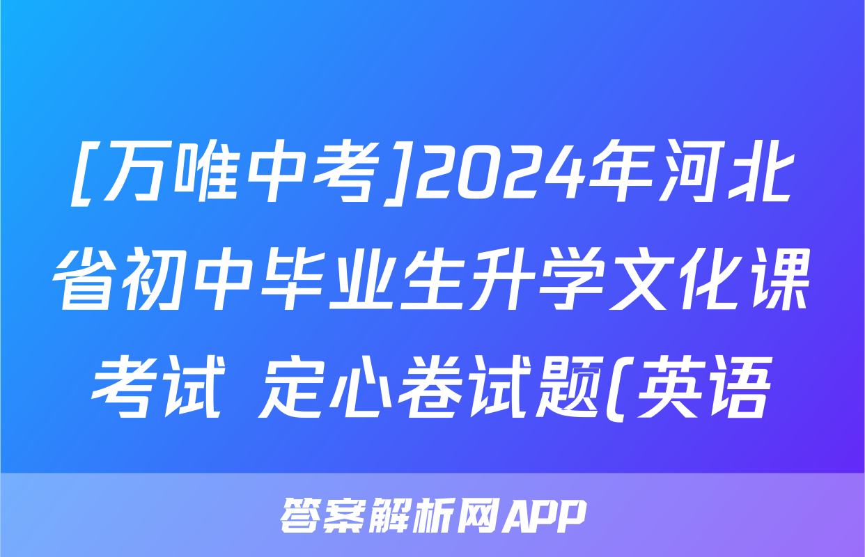 [万唯中考]2024年河北省初中毕业生升学文化课考试 定心卷试题(英语)