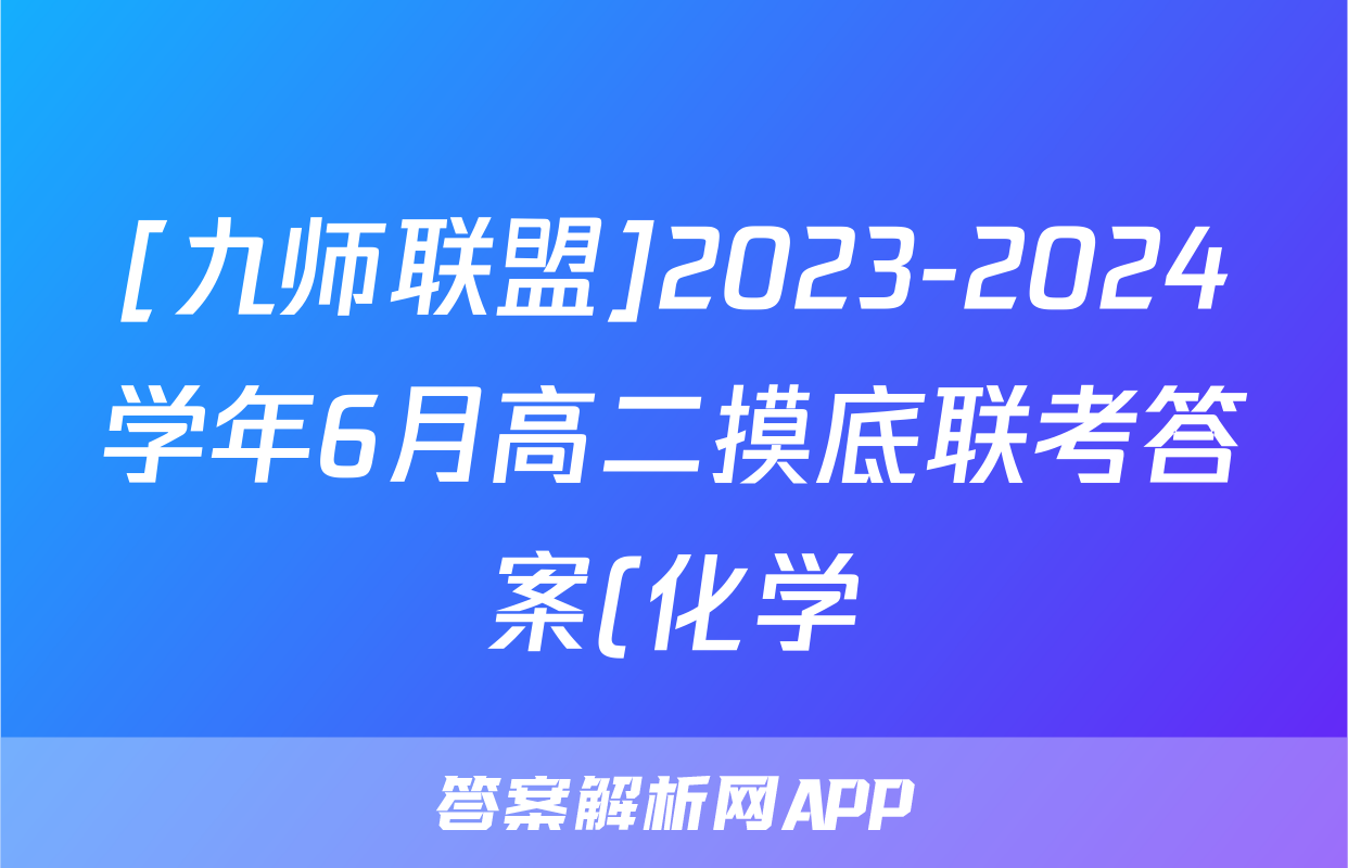 [九师联盟]2023-2024学年6月高二摸底联考答案(化学)正在持续更新,目前2024-2025英语周报答案网为大家整理了相关试题及答案,供大家查缺补漏,高效提升成绩。