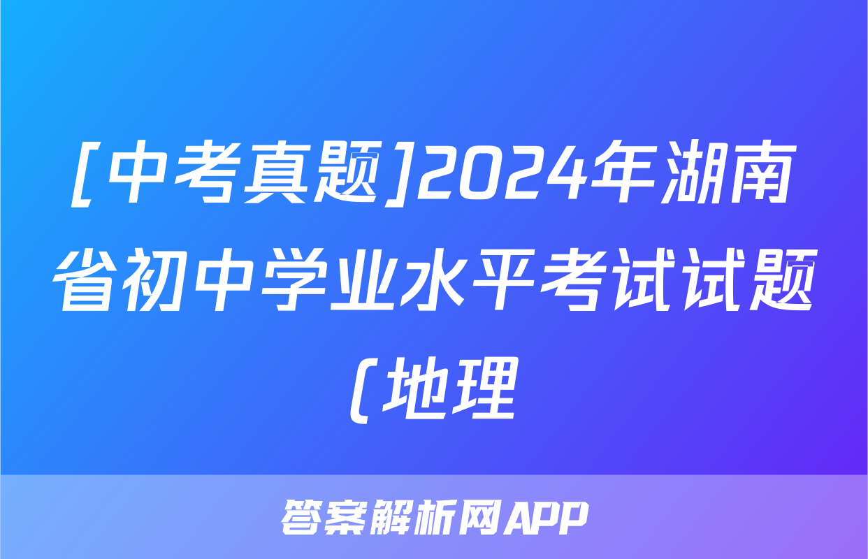 [中考真题]2024年湖南省初中学业水平考试试题(地理)正在持续更新,目前2024-2025英语周报答案网为大家整理了相关试题及答案,供大家查缺补漏,高效提升成绩。