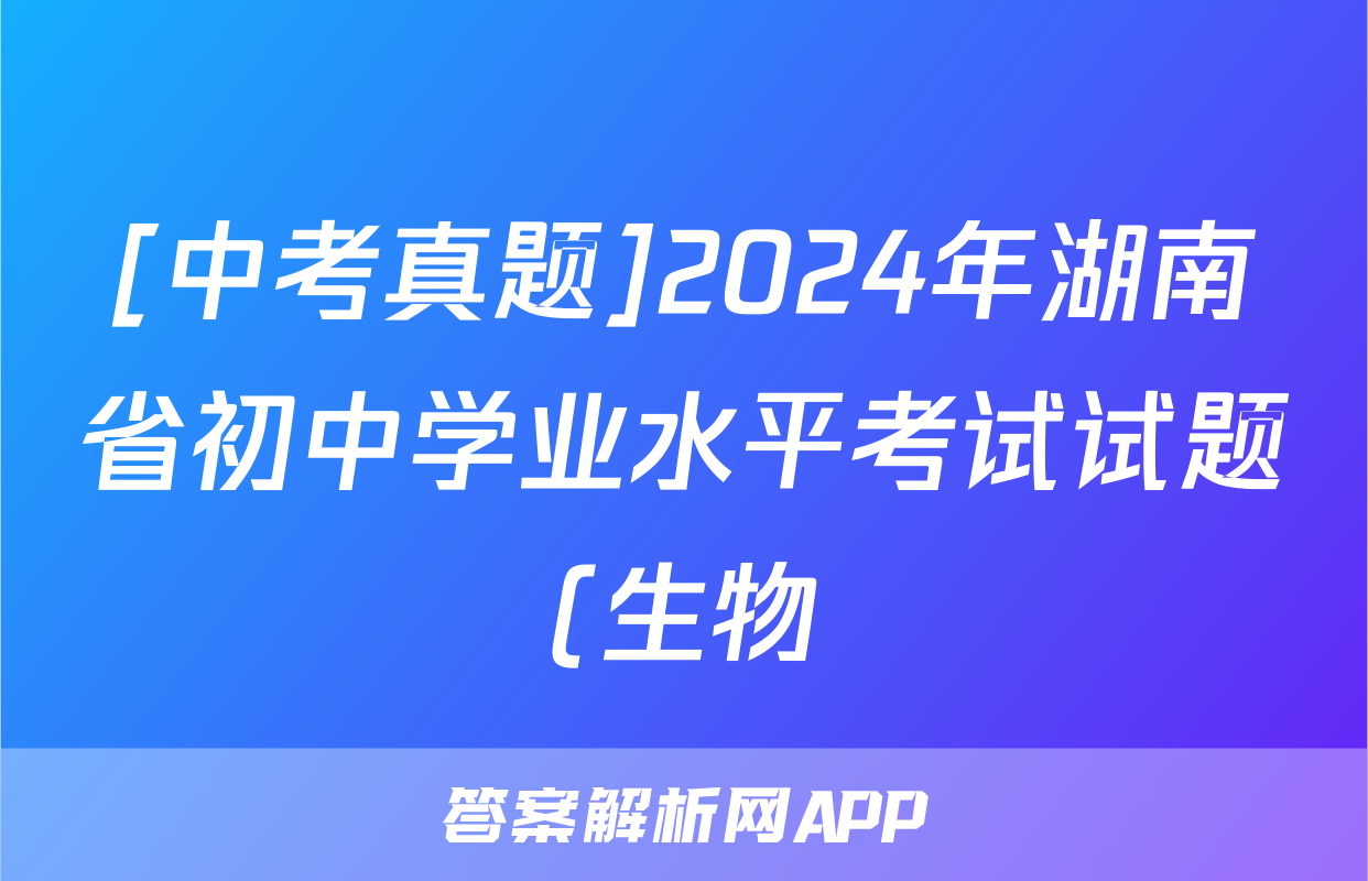[中考真题]2024年湖南省初中学业水平考试试题(生物)正在持续更新,目前2024-2025英语周报答案网为大家整理了相关试题及答案,供大家查缺补漏,高效提升成绩。