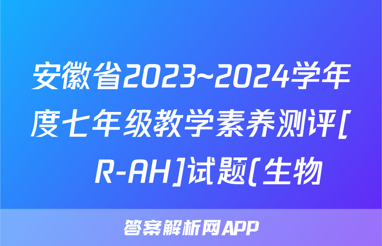 安徽省2023~2024学年度七年级教学素养测评[☐R-AH]试题(生物)正在持续更新,目前2024-2025英语周报答案网为大家整理了相关试题及答案,供大家查缺补漏,高效提升成绩。
