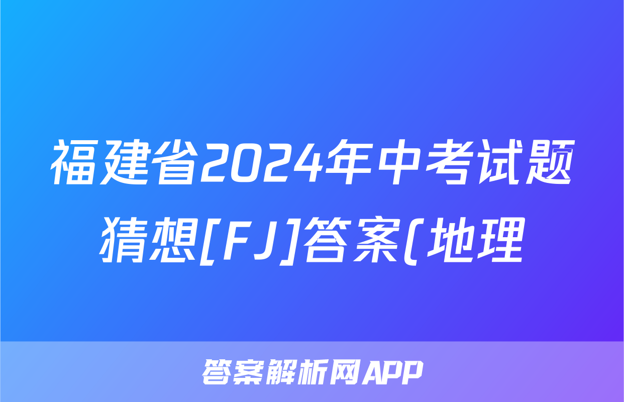 福建省2024年中考试题猜想[FJ]答案(地理)正在持续更新,目前2024-2025英语周报答案网为大家整理了相关试题及答案,供大家查缺补漏,高效提升成绩。