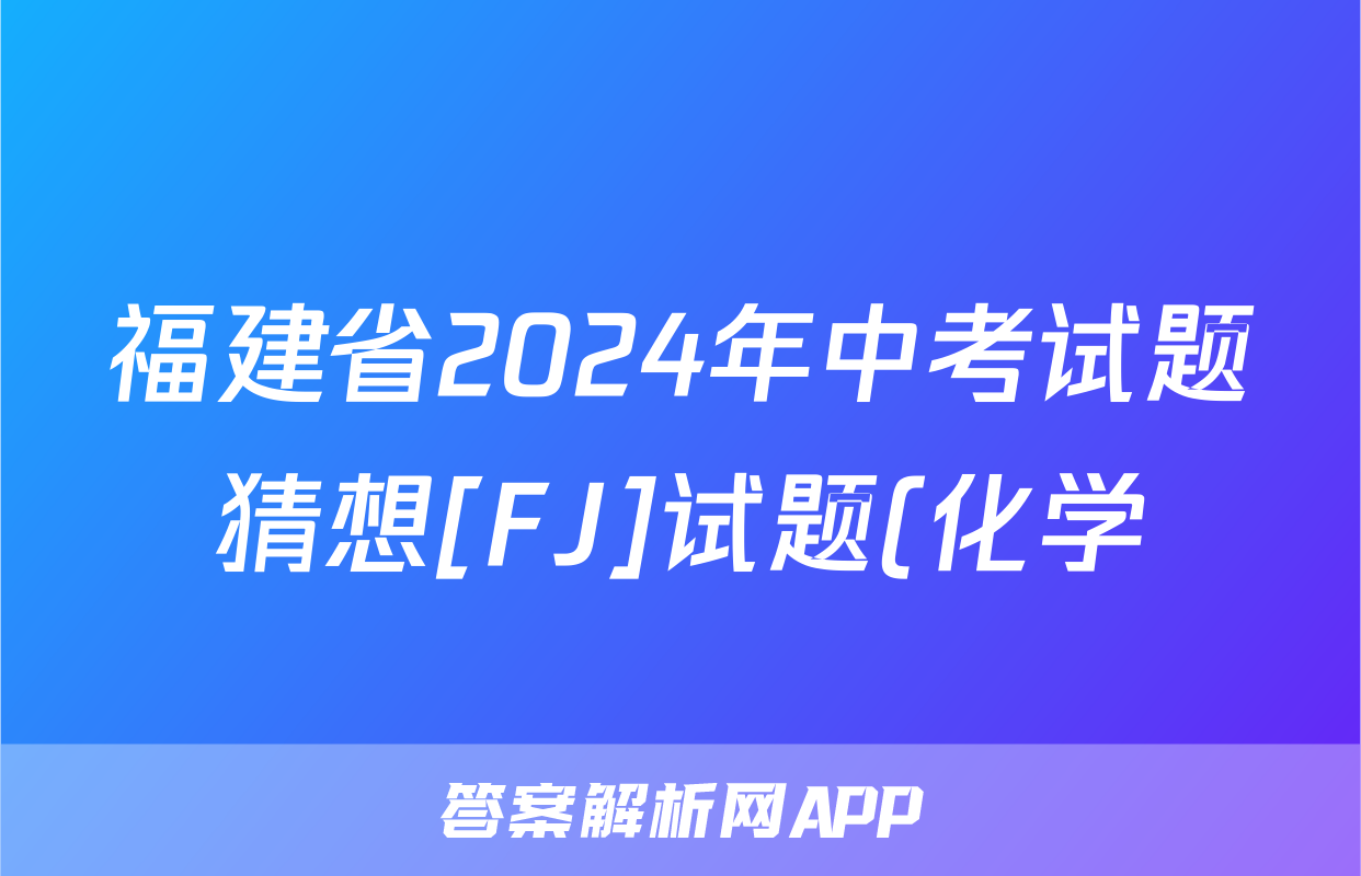 福建省2024年中考试题猜想[FJ]试题(化学)正在持续更新,目前2024-2025英语周报答案网为大家整理了相关试题及答案,供大家查缺补漏,高效提升成绩。