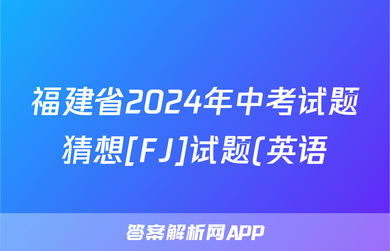 福建省2024年中考试题猜想[FJ]试题(英语)正在持续更新,目前2024-2025英语周报答案网为大家整理了相关试题及答案,供大家查缺补漏,高效提升成绩。