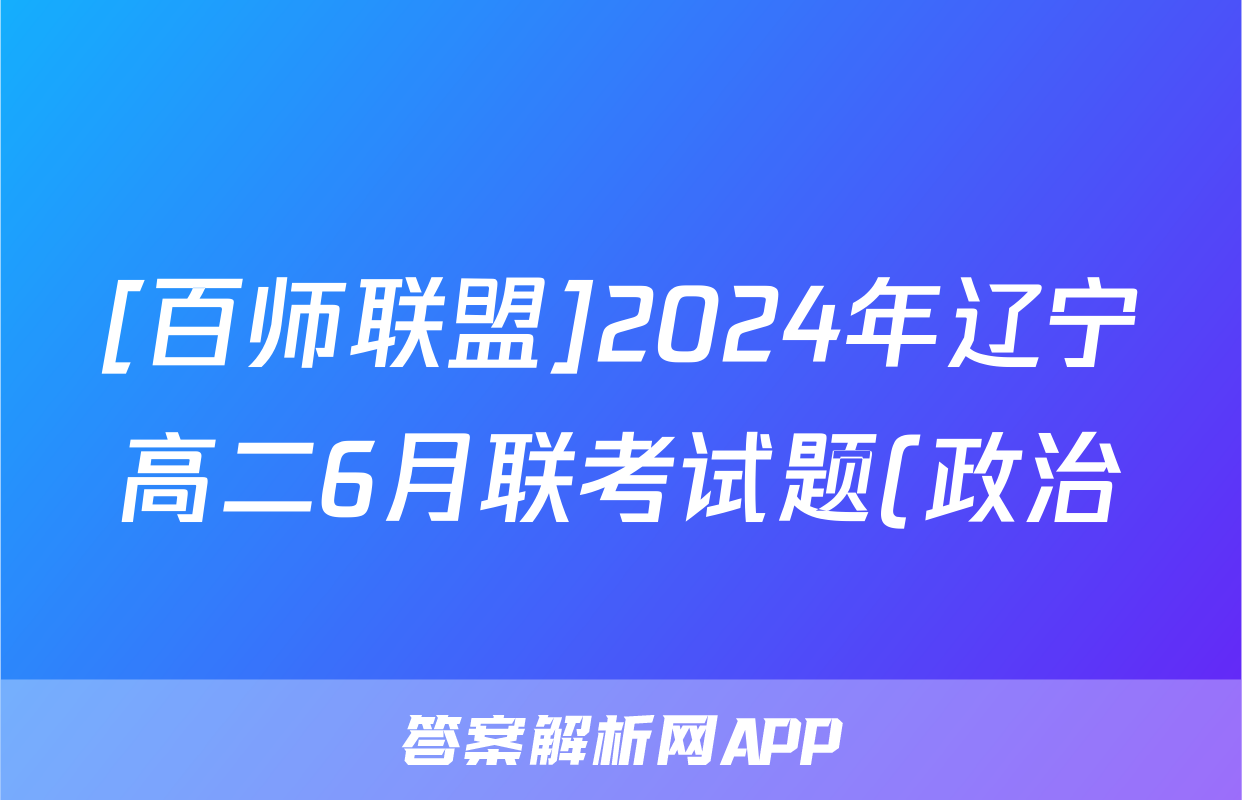 [百师联盟]2024年辽宁高二6月联考试题(政治)正在持续更新,目前2024-2025英语周报答案网为大家整理了相关试题及答案,供大家查缺补漏,高效提升成绩。