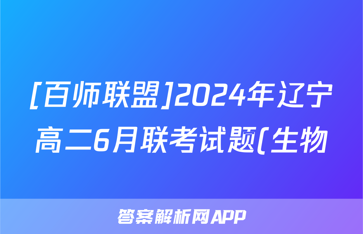 [百师联盟]2024年辽宁高二6月联考试题(生物)正在持续更新,目前2024-2025英语周报答案网为大家整理了相关试题及答案,供大家查缺补漏,高效提升成绩。