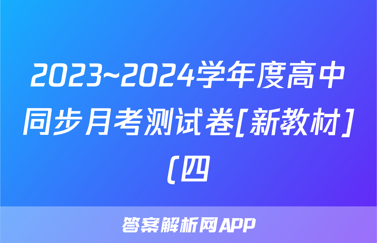 2023~2024学年度高中同步月考测试卷[新教材](四)高一(6月)试卷及答案答案(化学)正在持续更新,目前2024-2025英语周报答案网为大家整理了相关试题及答案,供大家查缺补漏,高效提升成绩。