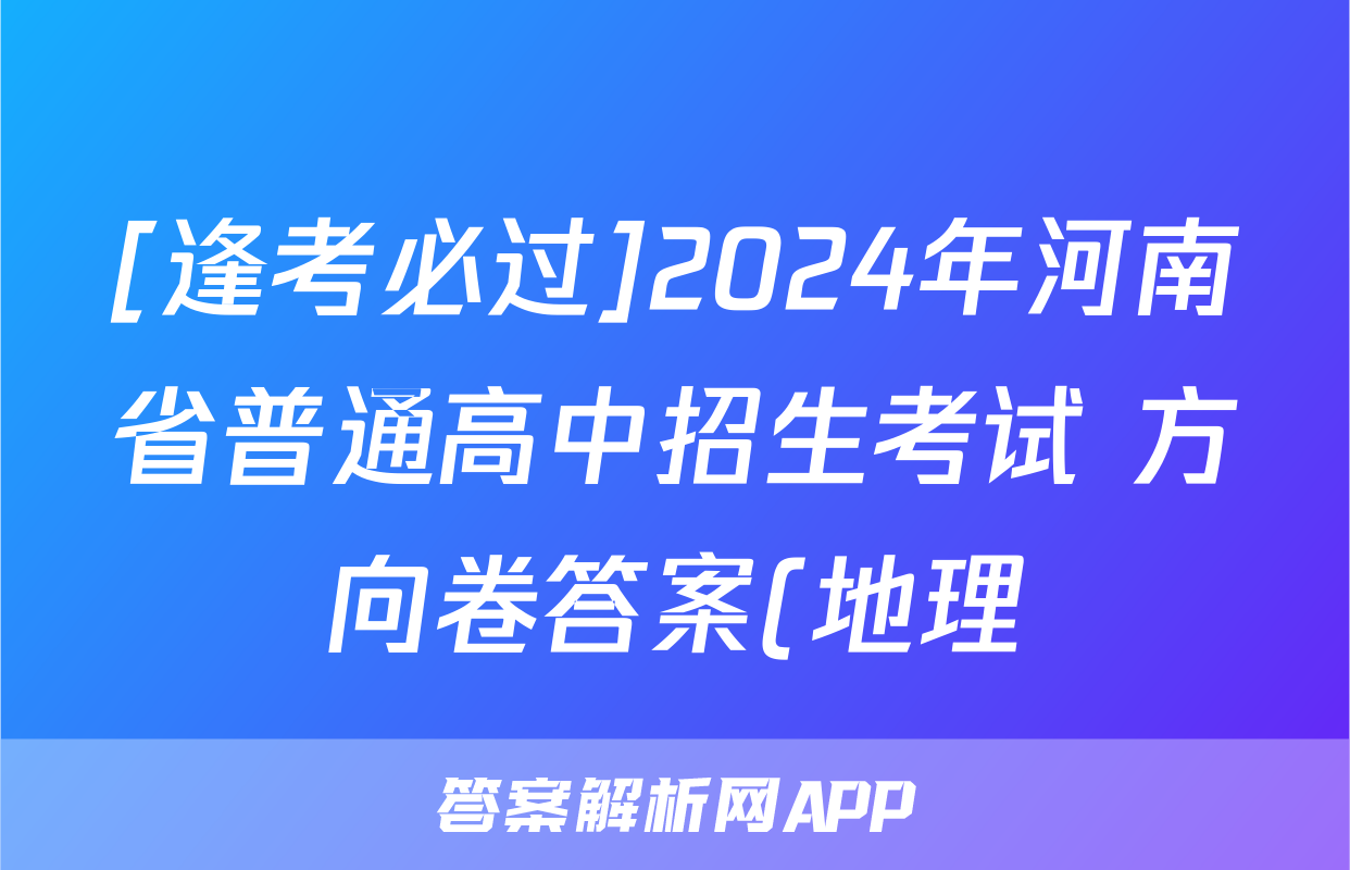 [逢考必过]2024年河南省普通高中招生考试 方向卷答案(地理)正在持续更新,目前2024-2025英语周报答案网为大家整理了相关试题及答案,供大家查缺补漏,高效提升成绩。