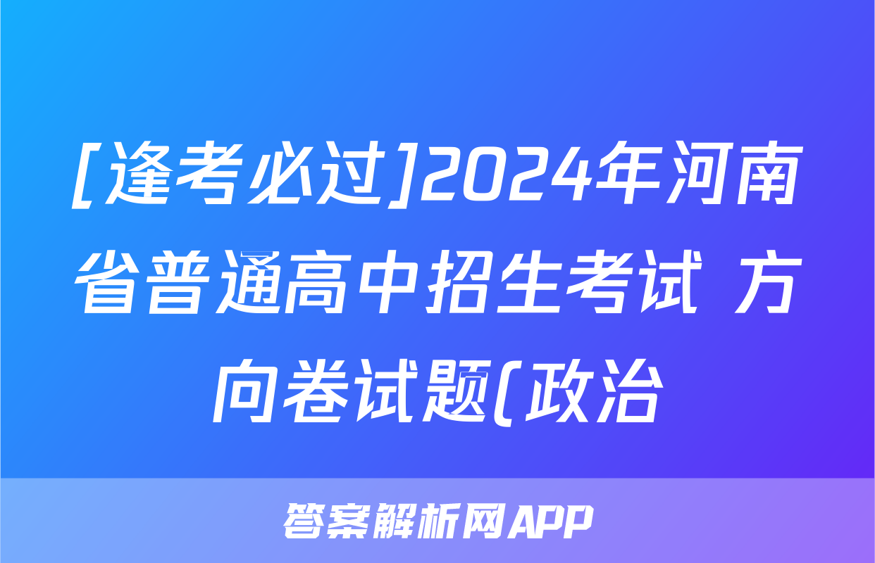 [逢考必过]2024年河南省普通高中招生考试 方向卷试题(政治)正在持续更新,目前2024-2025英语周报答案网为大家整理了相关试题及答案,供大家查缺补漏,高效提升成绩。