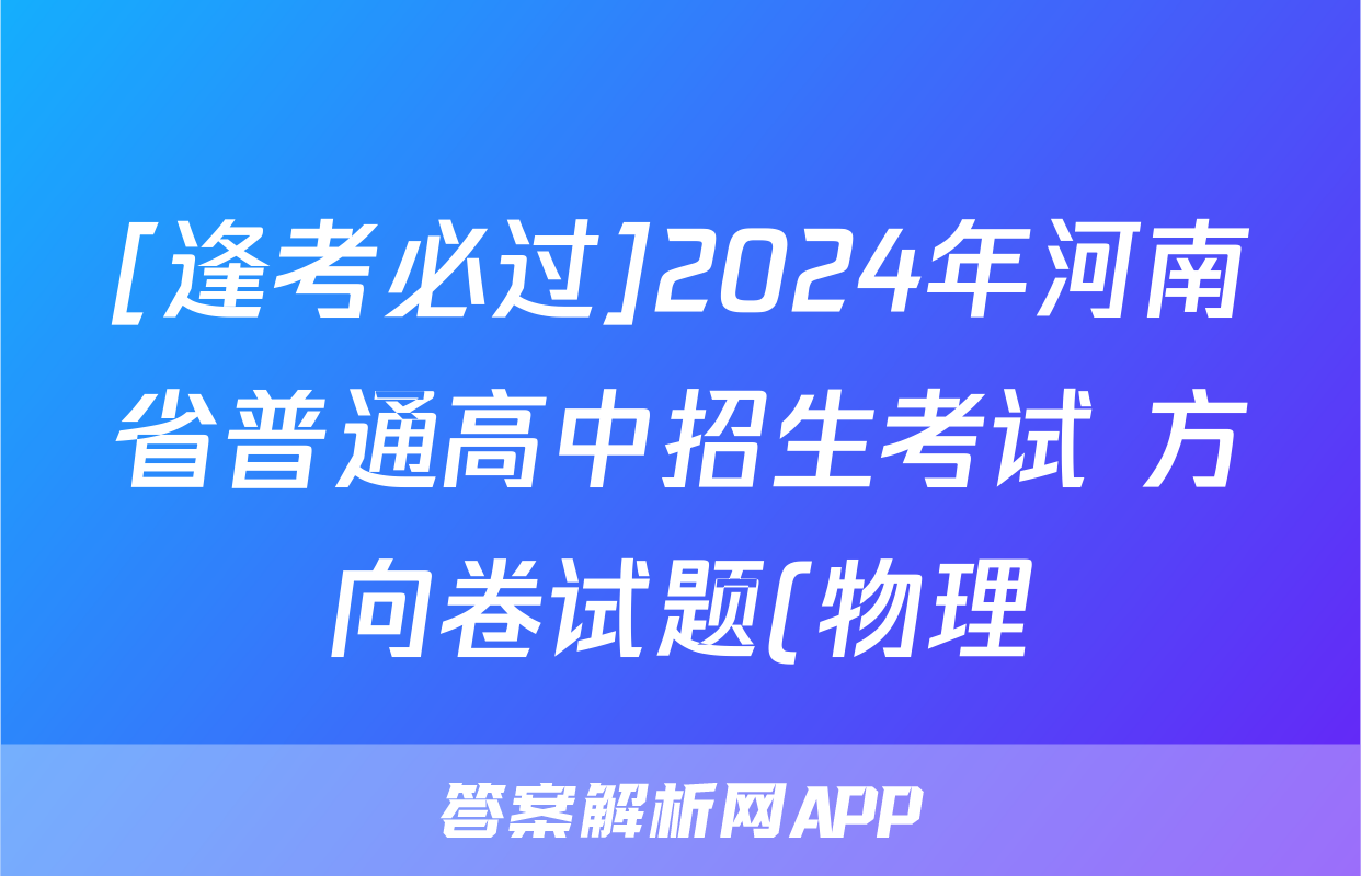 [逢考必过]2024年河南省普通高中招生考试 方向卷试题(物理)正在持续更新,目前2024-2025英语周报答案网为大家整理了相关试题及答案,供大家查缺补漏,高效提升成绩。