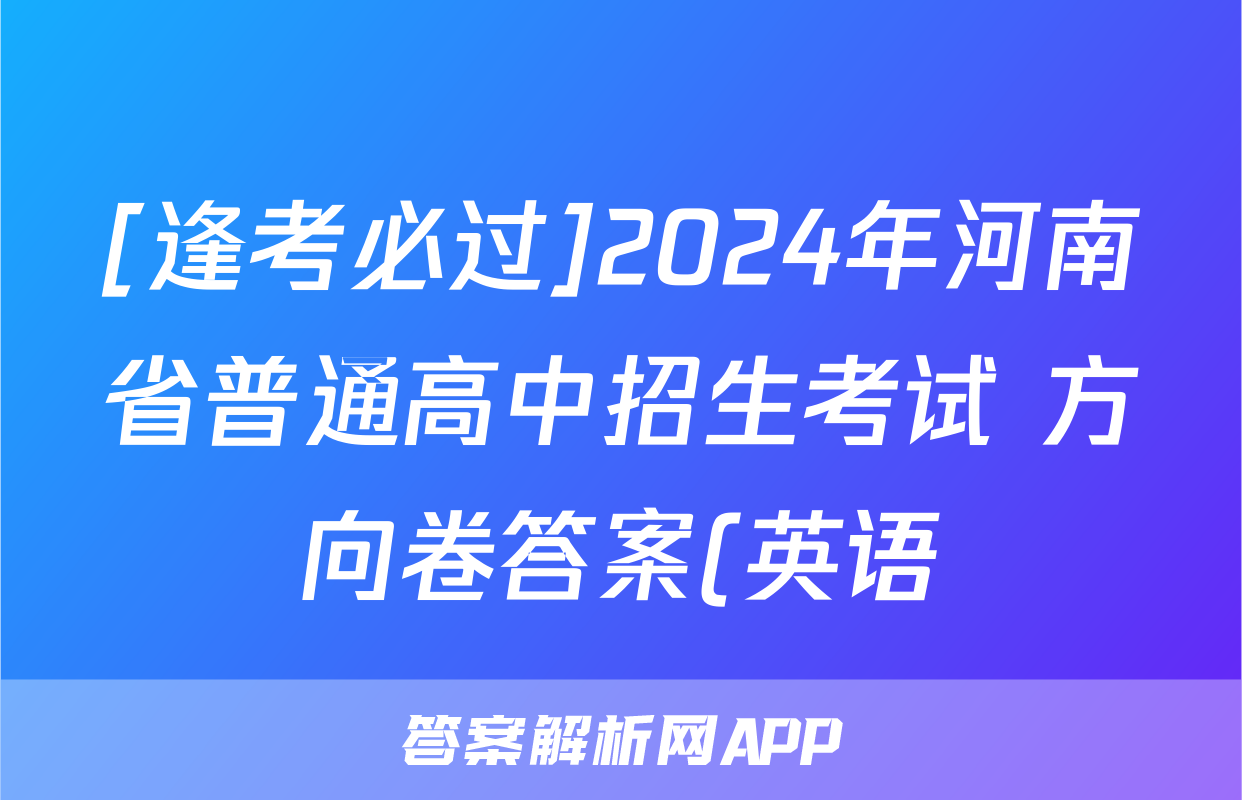 [逢考必过]2024年河南省普通高中招生考试 方向卷答案(英语)