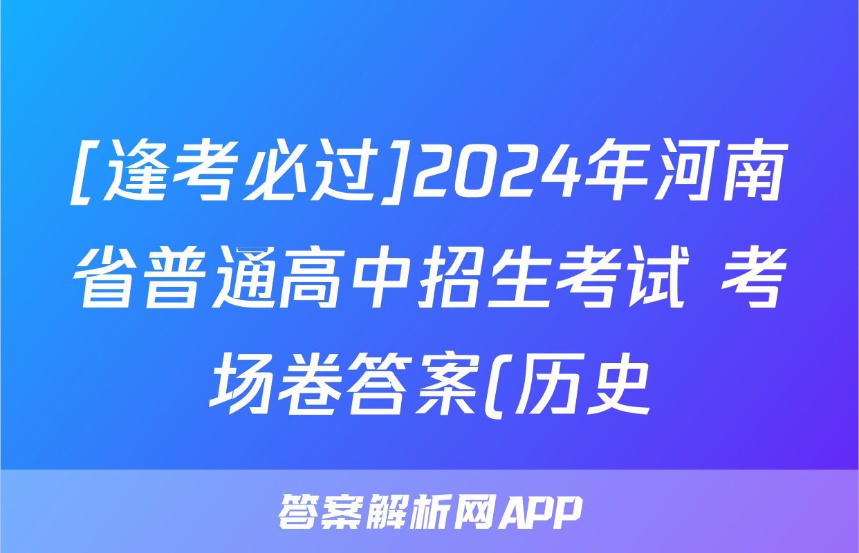 [逢考必过]2024年河南省普通高中招生考试 考场卷答案(历史)正在持续更新,目前2024-2025英语周报答案网为大家整理了相关试题及答案,供大家查缺补漏,高效提升成绩。