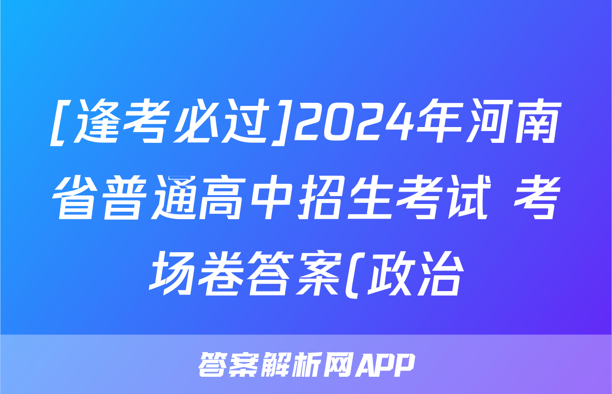 [逢考必过]2024年河南省普通高中招生考试 考场卷答案(政治)正在持续更新,目前2024-2025英语周报答案网为大家整理了相关试题及答案,供大家查缺补漏,高效提升成绩。