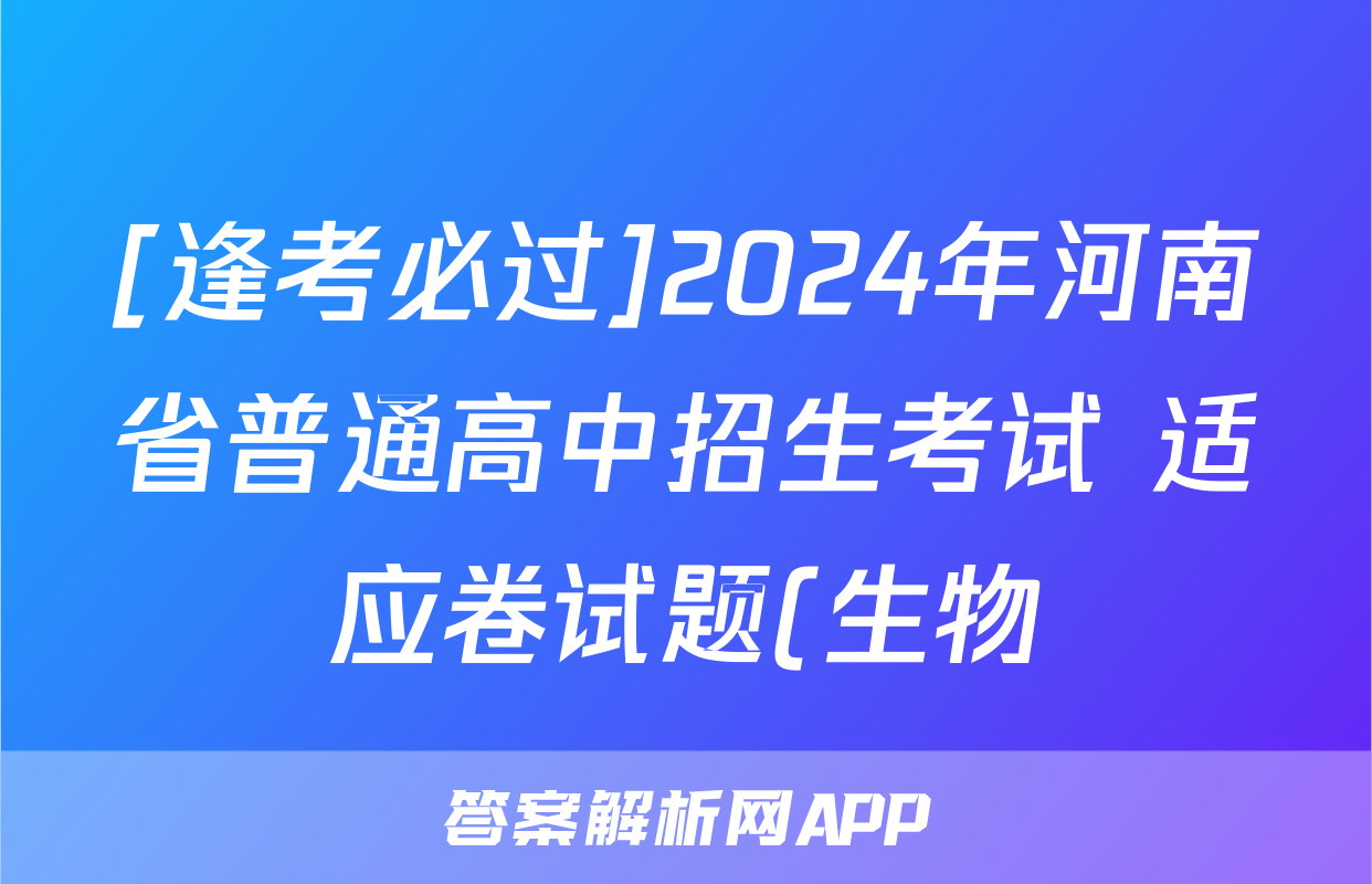[逢考必过]2024年河南省普通高中招生考试 适应卷试题(生物)正在持续更新,目前2024-2025英语周报答案网为大家整理了相关试题及答案,供大家查缺补漏,高效提升成绩。