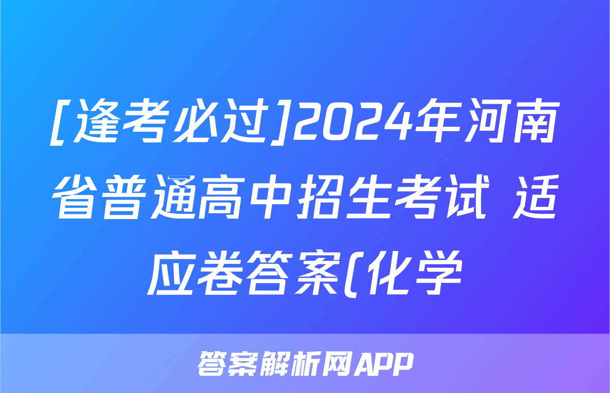 [逢考必过]2024年河南省普通高中招生考试 适应卷答案(化学)正在持续更新,目前2024-2025英语周报答案网为大家整理了相关试题及答案,供大家查缺补漏,高效提升成绩。