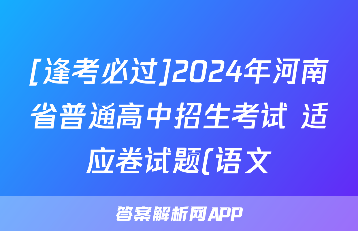 [逢考必过]2024年河南省普通高中招生考试 适应卷试题(语文)正在持续更新,目前2024-2025英语周报答案网为大家整理了相关试题及答案,供大家查缺补漏,高效提升成绩。