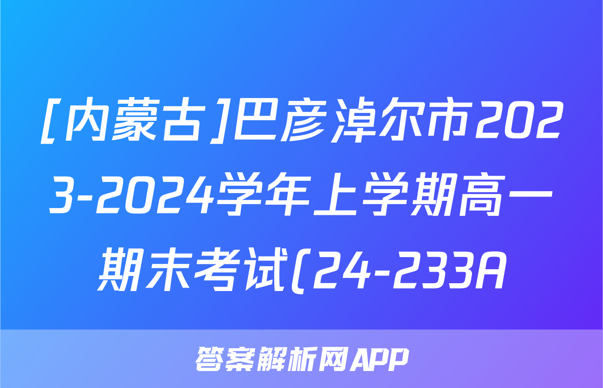 [内蒙古]巴彦淖尔市2023-2024学年上学期高一期末考试(24-233A)化学试题正在持续更新,目前2024-2025英语周报答案网为大家整理了相关试题及答案,供大家查缺补漏,高效提升成绩。
