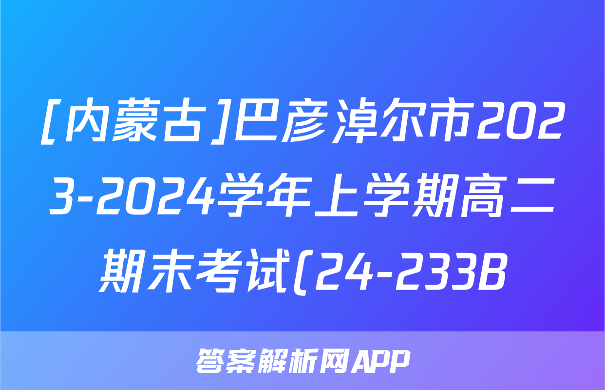 [内蒙古]巴彦淖尔市2023-2024学年上学期高二期末考试(24-233B)数学答案正在持续更新,目前2024-2025英语周报答案网为大家整理了相关试题及答案,供大家查缺补漏,高效提升成绩。