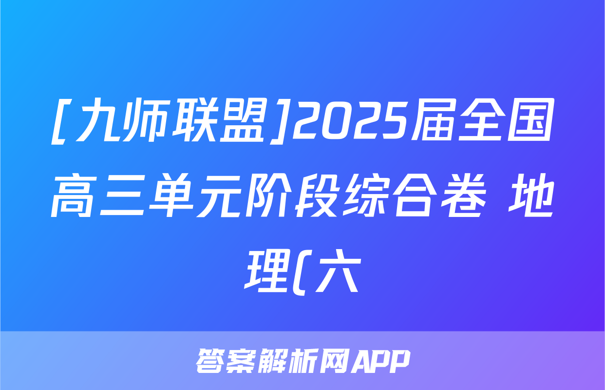 [九师联盟]2025届全国高三单元阶段综合卷 地理(六)6答案正在持续更新,目前2024-2025英语周报答案网为大家整理了相关试题及答案,供大家查缺补漏,高效提升成绩。
