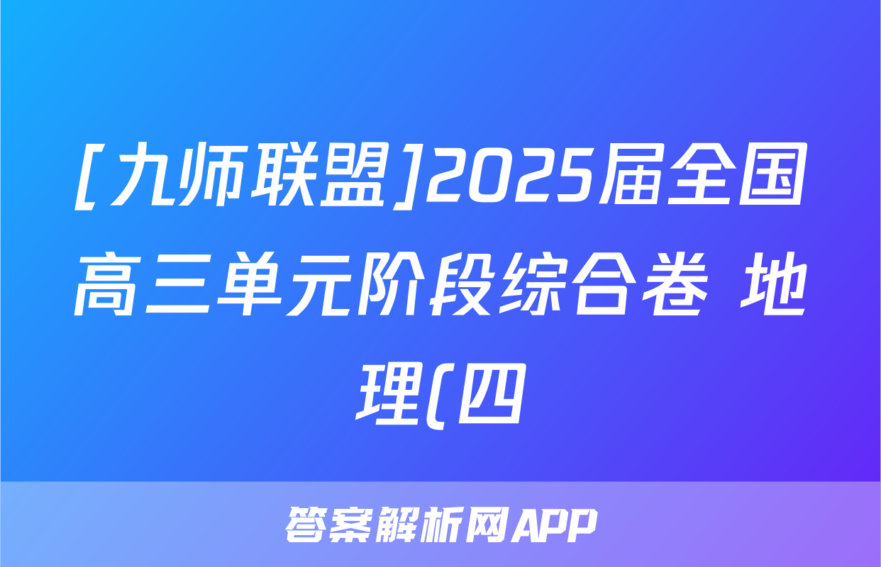 [九师联盟]2025届全国高三单元阶段综合卷 地理(四)4答案正在持续更新,目前2024-2025英语周报答案网为大家整理了相关试题及答案,供大家查缺补漏,高效提升成绩。