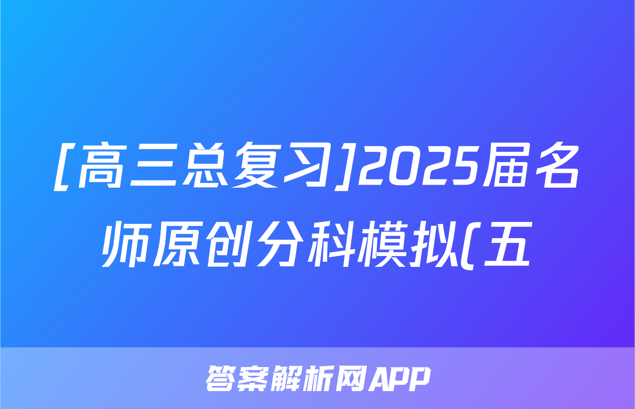 [高三总复习]2025届名师原创分科模拟(五)5化学(XS5)答案正在持续更新,目前2024-2025英语周报答案网为大家整理了相关试题及答案,供大家查缺补漏,高效提升成绩。