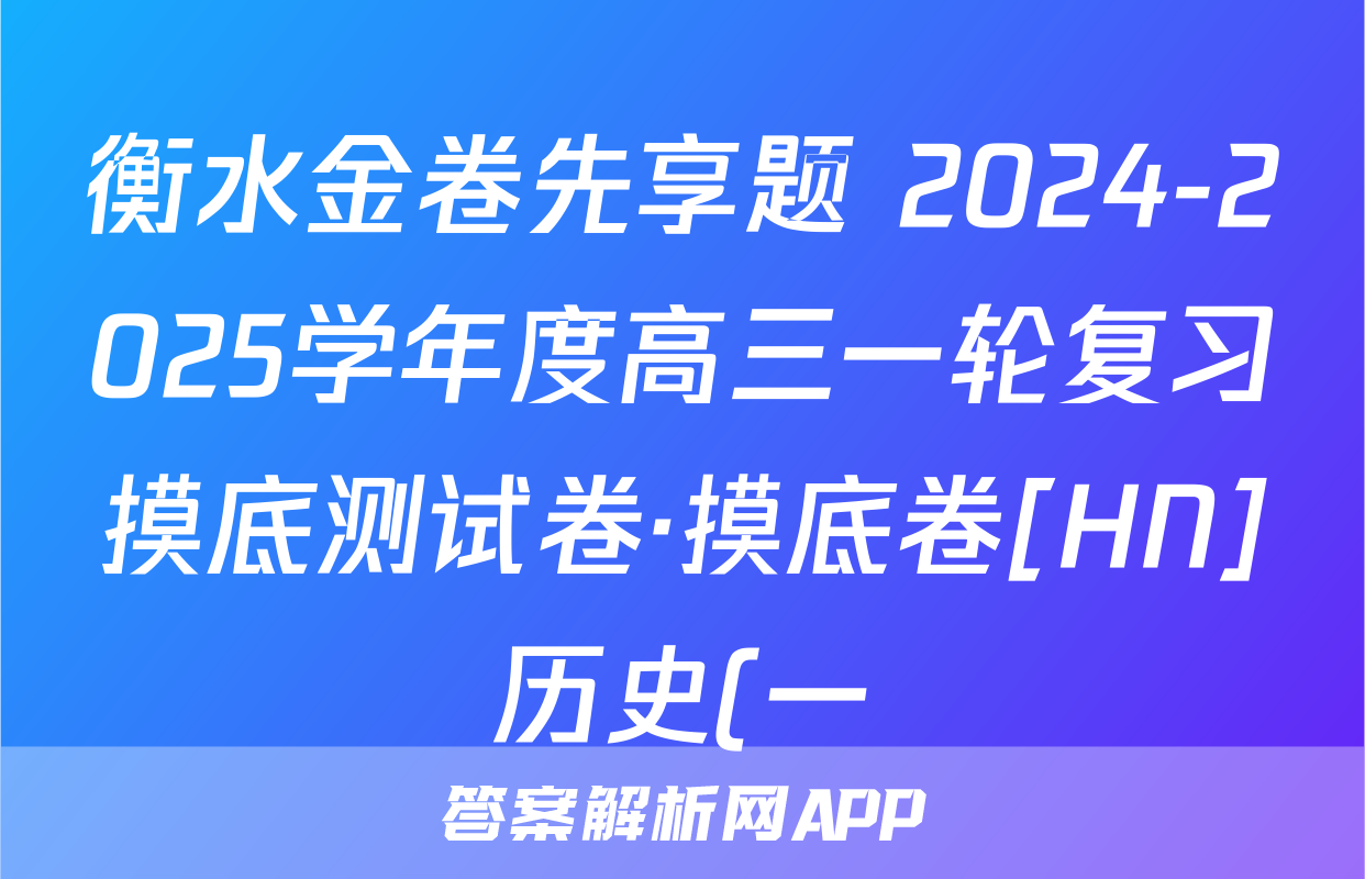 衡水金卷先享题 2024-2025学年度高三一轮复习摸底测试卷·摸底卷[HN]历史(一)1试题正在持续更新,目前2024-2025英语周报答案网为大家整理了相关试题及答案,供大家查缺补漏,高效提升成绩。