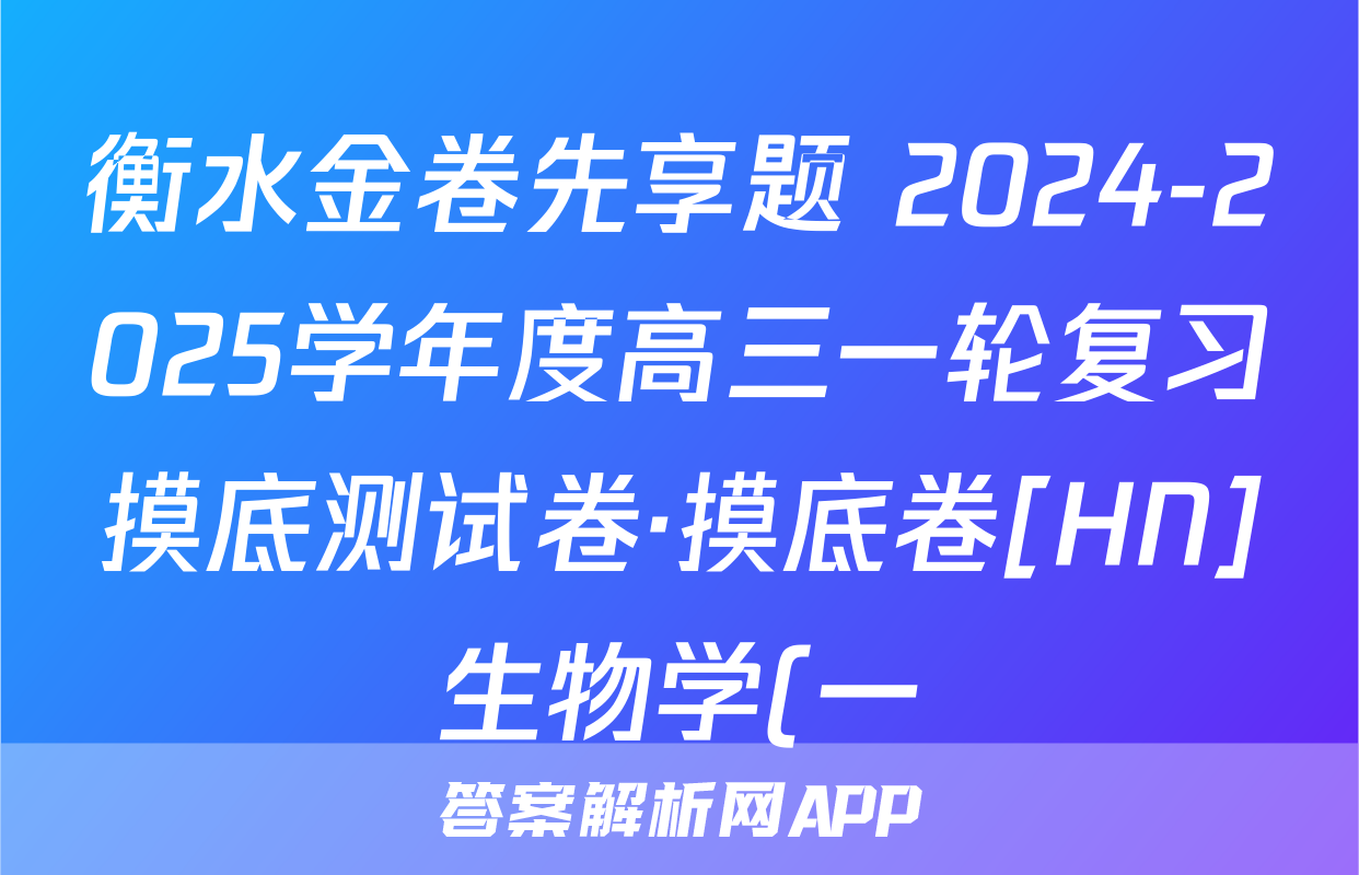衡水金卷先享题 2024-2025学年度高三一轮复习摸底测试卷·摸底卷[HN]生物学(一)1答案正在持续更新,目前2024-2025英语周报答案网为大家整理了相关试题及答案,供大家查缺补漏,高效提升成绩。