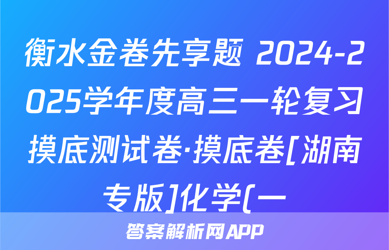 衡水金卷先享题 2024-2025学年度高三一轮复习摸底测试卷·摸底卷[湖南专版]化学(一)1试题正在持续更新,目前2024-2025英语周报答案网为大家整理了相关试题及答案,供大家查缺补漏,高效提升成绩。