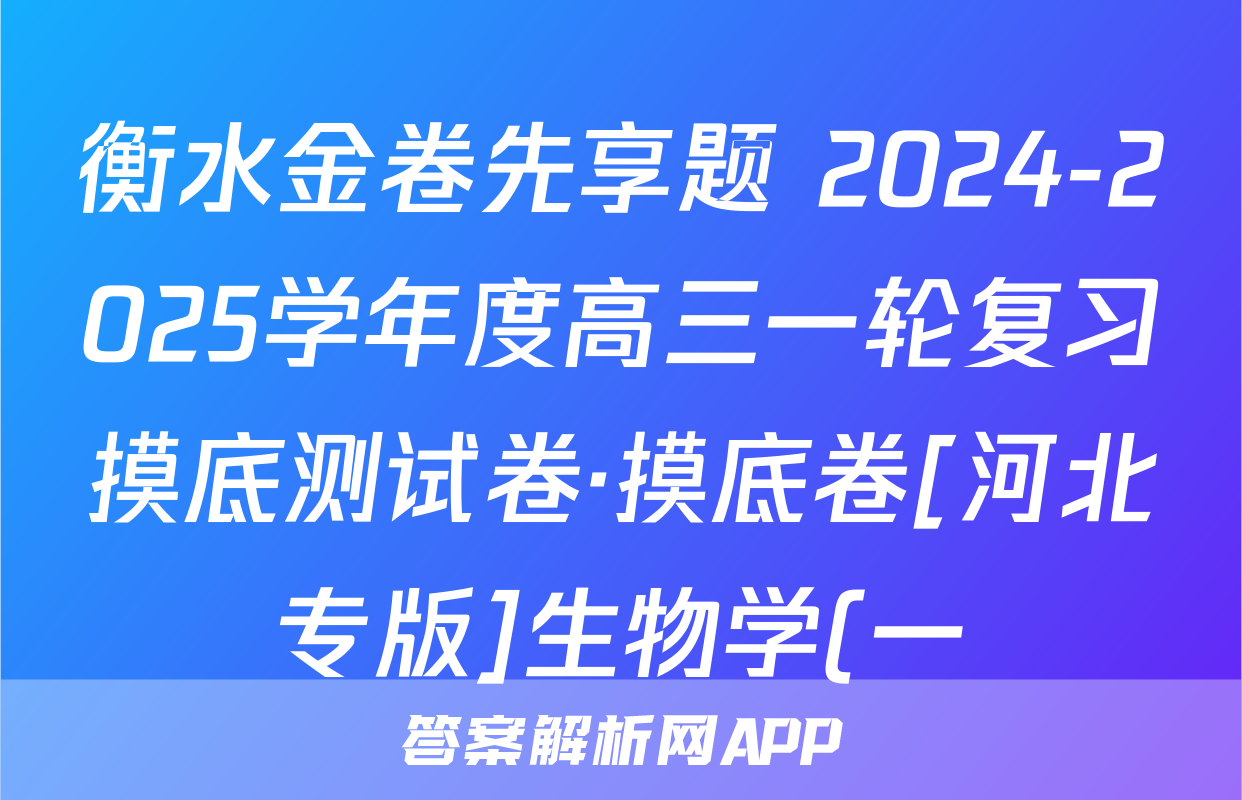衡水金卷先享题 2024-2025学年度高三一轮复习摸底测试卷·摸底卷[河北专版]生物学(一)1答案正在持续更新,目前2024-2025英语周报答案网为大家整理了相关试题及答案,供大家查缺补漏,高效提升成绩。