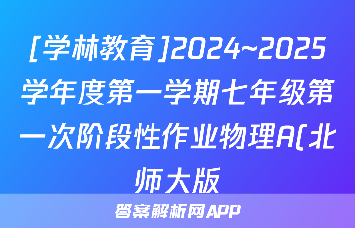 [学林教育]2024~2025学年度第一学期七年级第一次阶段性作业物理A(北师大版)试题正在持续更新,目前2024-2025英语周报答案网为大家整理了相关试题及答案,供大家查缺补漏,高效提升成绩。