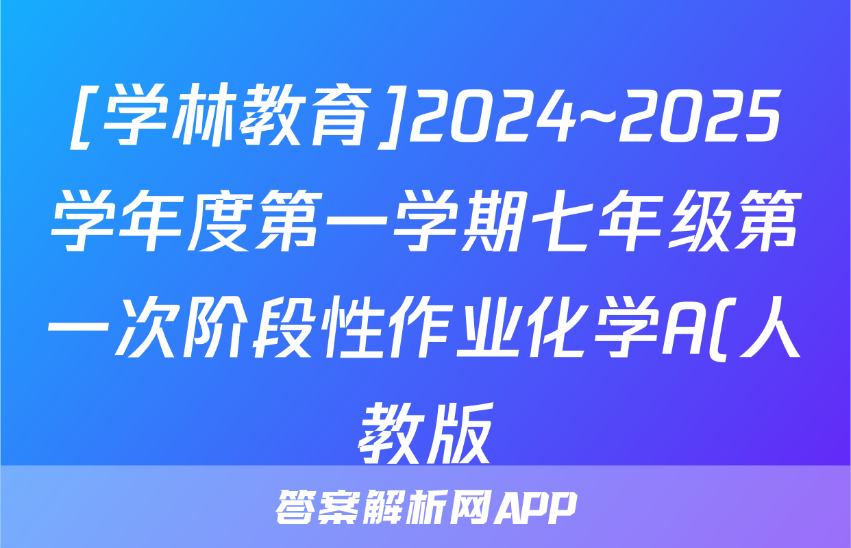 [学林教育]2024~2025学年度第一学期七年级第一次阶段性作业化学A(人教版)试题正在持续更新,目前2024-2025英语周报答案网为大家整理了相关试题及答案,供大家查缺补漏,高效提升成绩。
