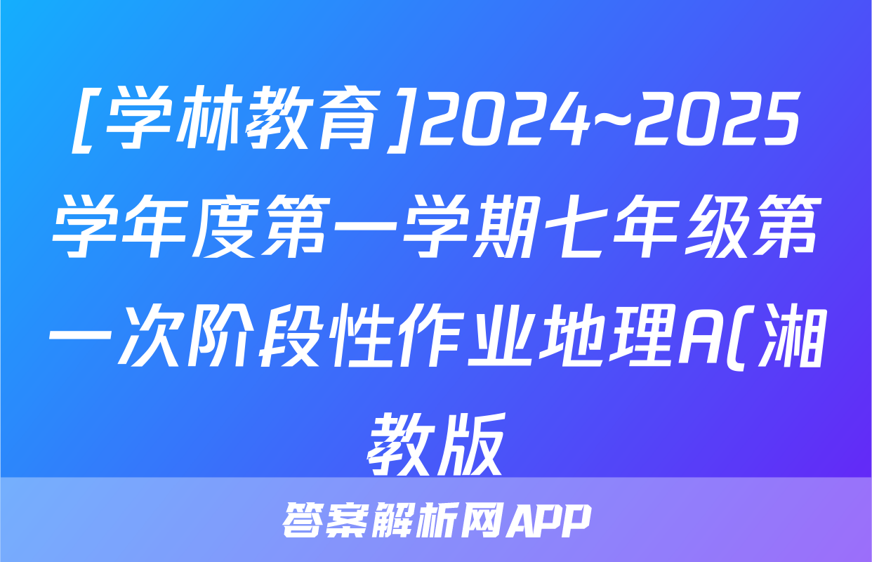 [学林教育]2024~2025学年度第一学期七年级第一次阶段性作业地理A(湘教版)试题正在持续更新,目前2024-2025英语周报答案网为大家整理了相关试题及答案,供大家查缺补漏,高效提升成绩。