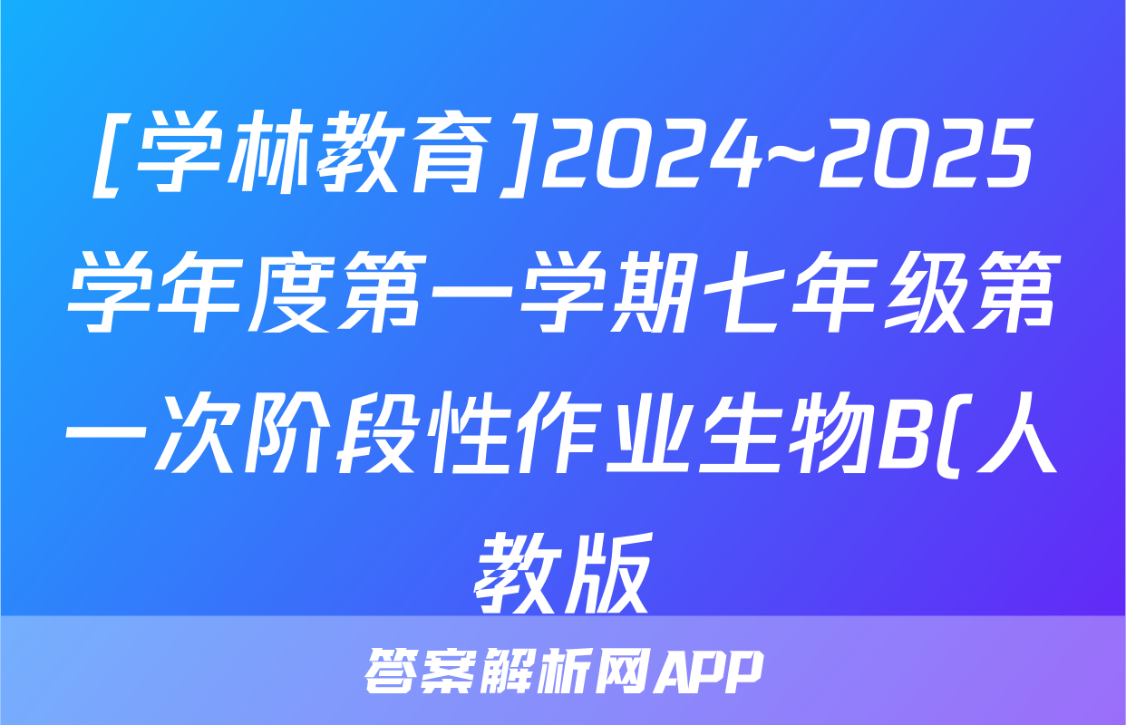 [学林教育]2024~2025学年度第一学期七年级第一次阶段性作业生物B(人教版)试题正在持续更新,目前2024-2025英语周报答案网为大家整理了相关试题及答案,供大家查缺补漏,高效提升成绩。