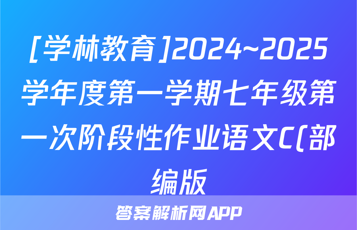 [学林教育]2024~2025学年度第一学期七年级第一次阶段性作业语文C(部编版)试题正在持续更新,目前2024-2025英语周报答案网为大家整理了相关试题及答案,供大家查缺补漏,高效提升成绩。