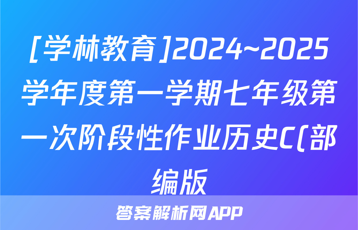 [学林教育]2024~2025学年度第一学期七年级第一次阶段性作业历史C(部编版)答案正在持续更新,目前2024-2025英语周报答案网为大家整理了相关试题及答案,供大家查缺补漏,高效提升成绩。