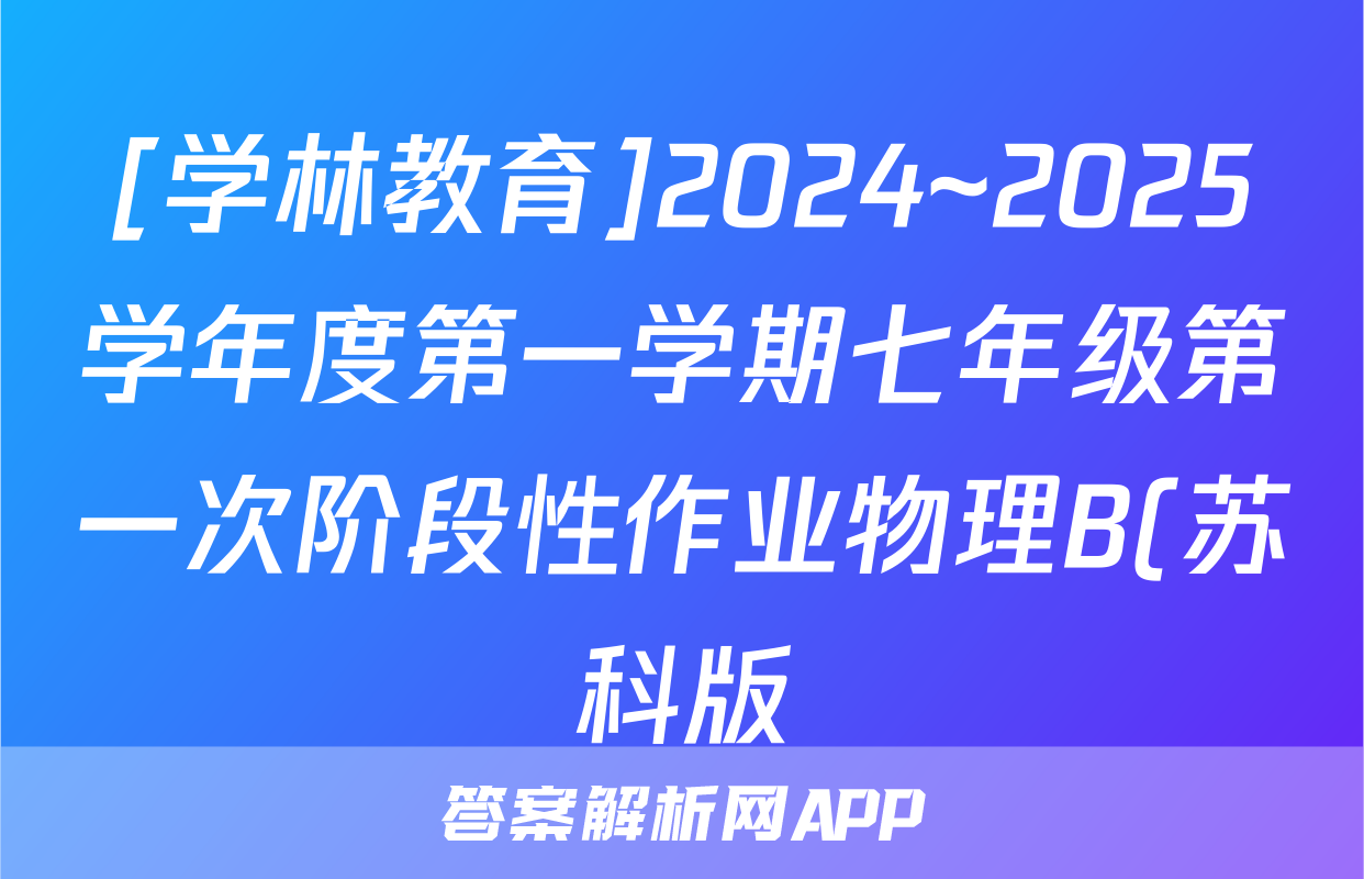 [学林教育]2024~2025学年度第一学期七年级第一次阶段性作业物理B(苏科版)试题正在持续更新,目前2024-2025英语周报答案网为大家整理了相关试题及答案,供大家查缺补漏,高效提升成绩。