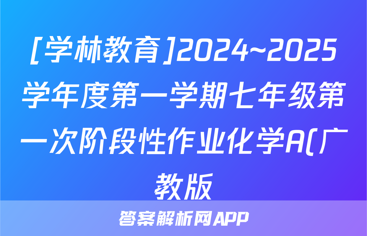 [学林教育]2024~2025学年度第一学期七年级第一次阶段性作业化学A(广教版)试题正在持续更新,目前2024-2025英语周报答案网为大家整理了相关试题及答案,供大家查缺补漏,高效提升成绩。