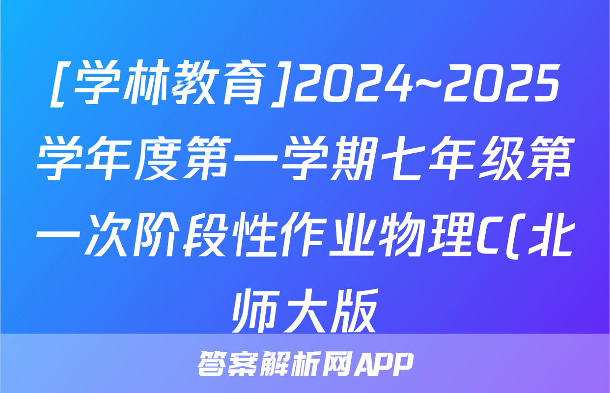 [学林教育]2024~2025学年度第一学期七年级第一次阶段性作业物理C(北师大版)答案正在持续更新,目前2024-2025英语周报答案网为大家整理了相关试题及答案,供大家查缺补漏,高效提升成绩。