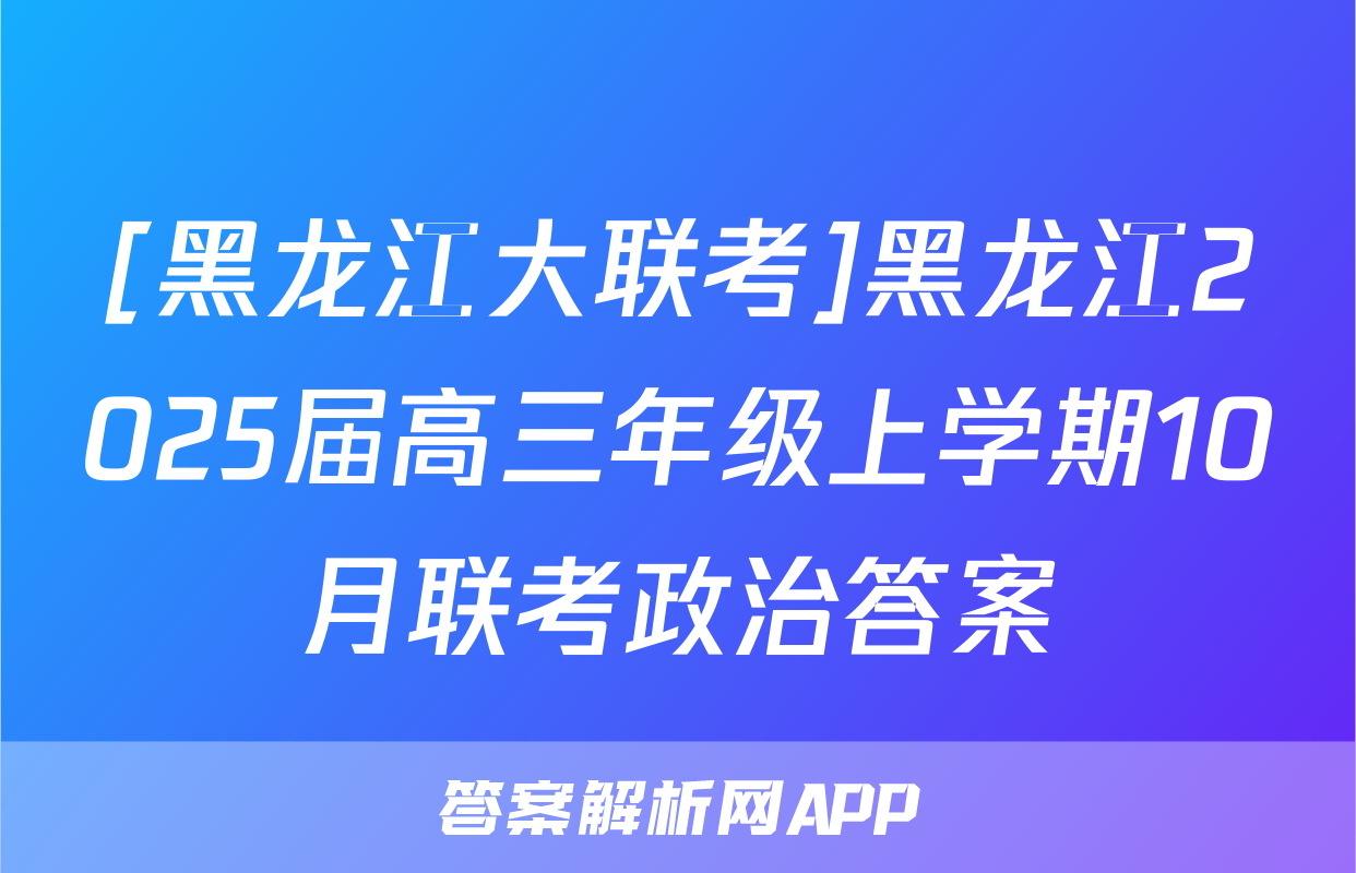 [黑龙江大联考]黑龙江2025届高三年级上学期10月联考政治答案正在持续更新,目前2024-2025英语周报答案网为大家整理了相关试题及答案,供大家查缺补漏,高效提升成绩。