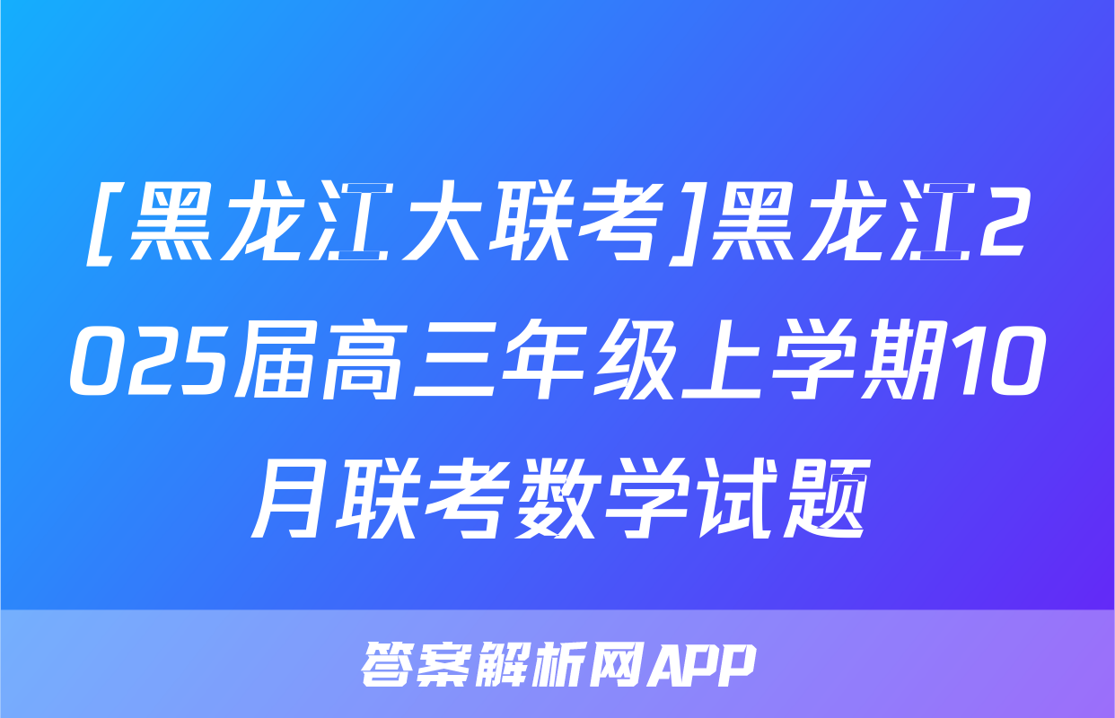 [黑龙江大联考]黑龙江2025届高三年级上学期10月联考数学试题正在持续更新,目前2024-2025英语周报答案网为大家整理了相关试题及答案,供大家查缺补漏,高效提升成绩。