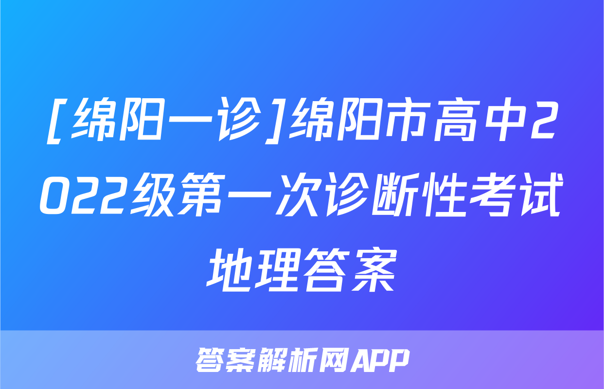 [绵阳一诊]绵阳市高中2022级第一次诊断性考试地理答案正在持续更新,目前2024-2025英语周报答案网为大家整理了相关试题及答案,供大家查缺补漏,高效提升成绩。