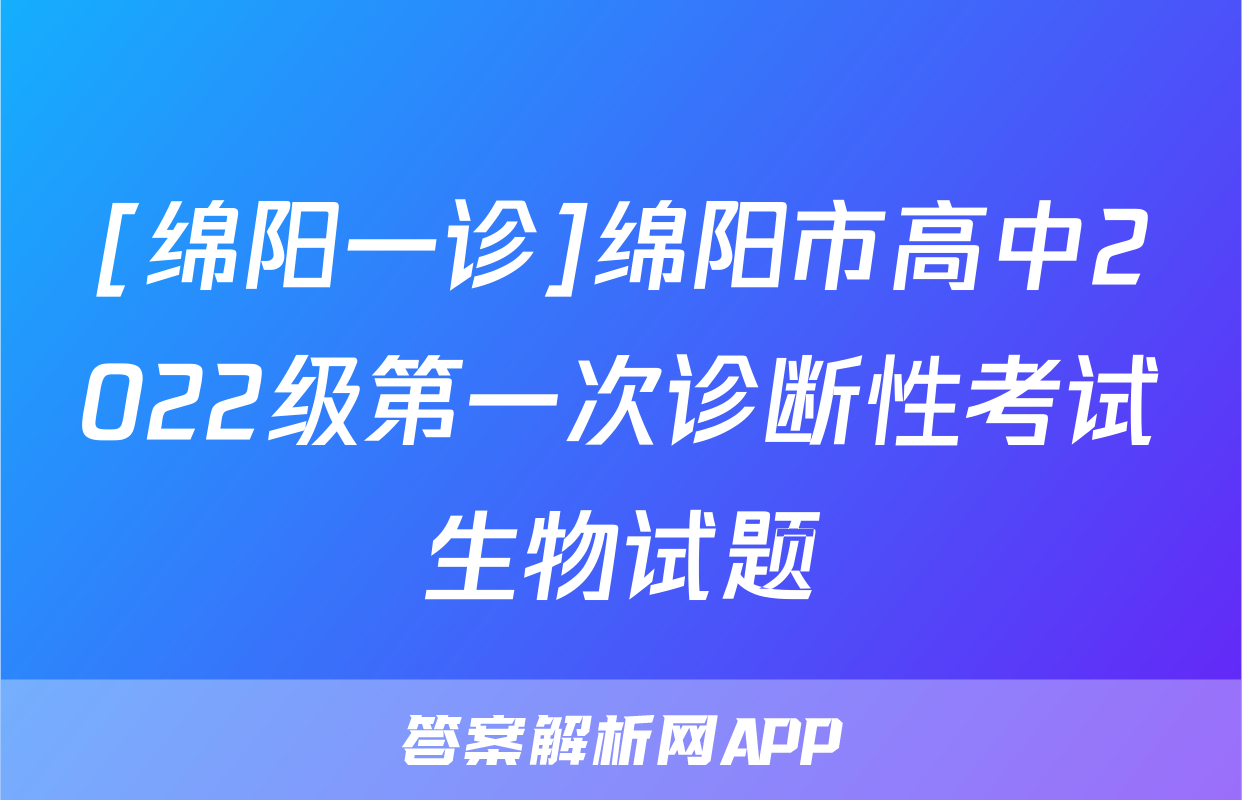 [绵阳一诊]绵阳市高中2022级第一次诊断性考试生物试题正在持续更新,目前2024-2025英语周报答案网为大家整理了相关试题及答案,供大家查缺补漏,高效提升成绩。